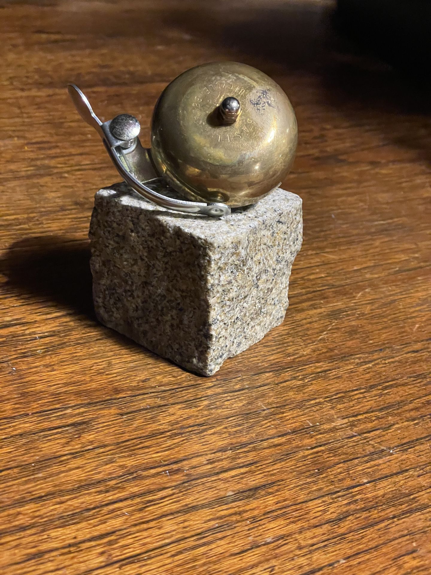 I am an avid cyclist (another affinity with Curnoe) and during my Krems residency began recording a collection of 114 bicycle bells towards a piece dedicated to John Cage (his next birthday, in 2026, will be 114). This piece comes at the inspiration of long-time Cage scholar, Viennese artist Sabine Groschup. During the process of recording these many bells I came to understand the particular character and sound of each one individually. Some were fairly new, others quite ‘vintage’ – and each had it’s own ‘personality’. I display a group of these cycling relics here on small Belgian pavé stones. During the course of making these recordings, I found that certain particular bells – 3 or 4 out of the entire group –were the best sounding bicycle bells I’ve ever heard. I’ve chosen one of this select group and made an edition of 5 copies, ‘The Best Bicycle Bell in the World’, mounted on pavé stones.