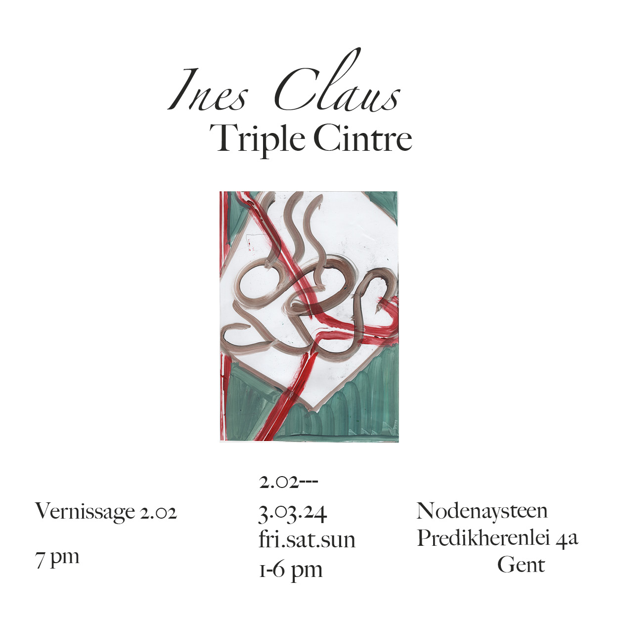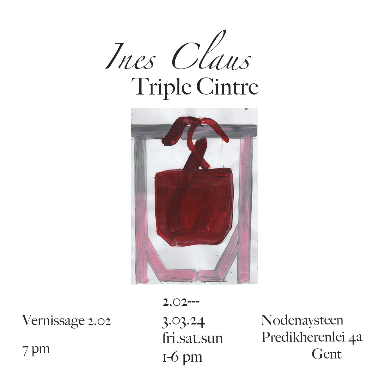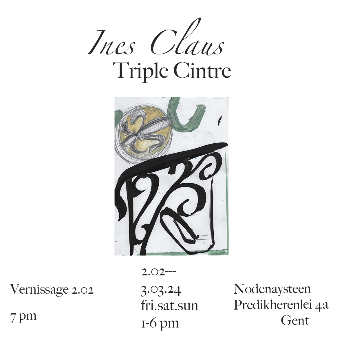 In 2017 studeerde Ines Claus (°1993) af in de Schone Kunsten (autonoom tekenen) aan KASK Gent. Haar werk is een fusie van tekenen, schilderen, collages, publicaties en installaties.
